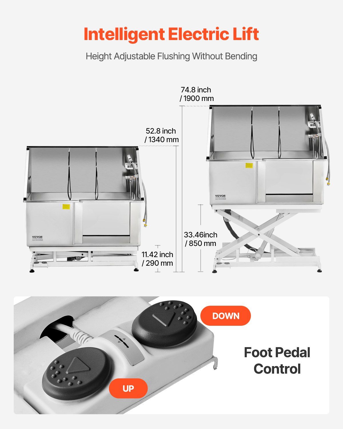Home > Electric Lift Dog Washing Station, 50Inch Professional Stainless Steel Pet Grooming Tub w/ Non-Slip Drain Board