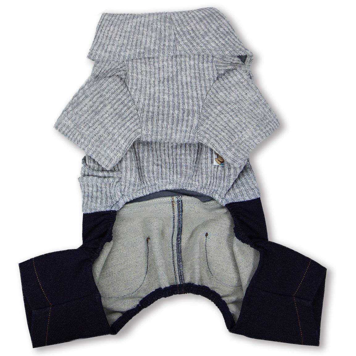 The Touchdog Vogue Neck-Wrap Sweater and Denim Pant Outfit is a 1 Piece outfit stitched together. This Full-body Dog Sweater is well crafted with a fashion-forward ribbed collar overlay that looks ultra-modern and trendy and comes together nicely with our Denim pant. The sweater is nice and breathable and features dual accented pockets along the backside and elastic conformed tubing throughout the length of the body that adds room for growth and provides a more tailored fit. Has a nice and comfortable stretch and feel throughout the outfit and completed with our embroiderery along the back and pockets. Available in Multiple Sizes and Colors.